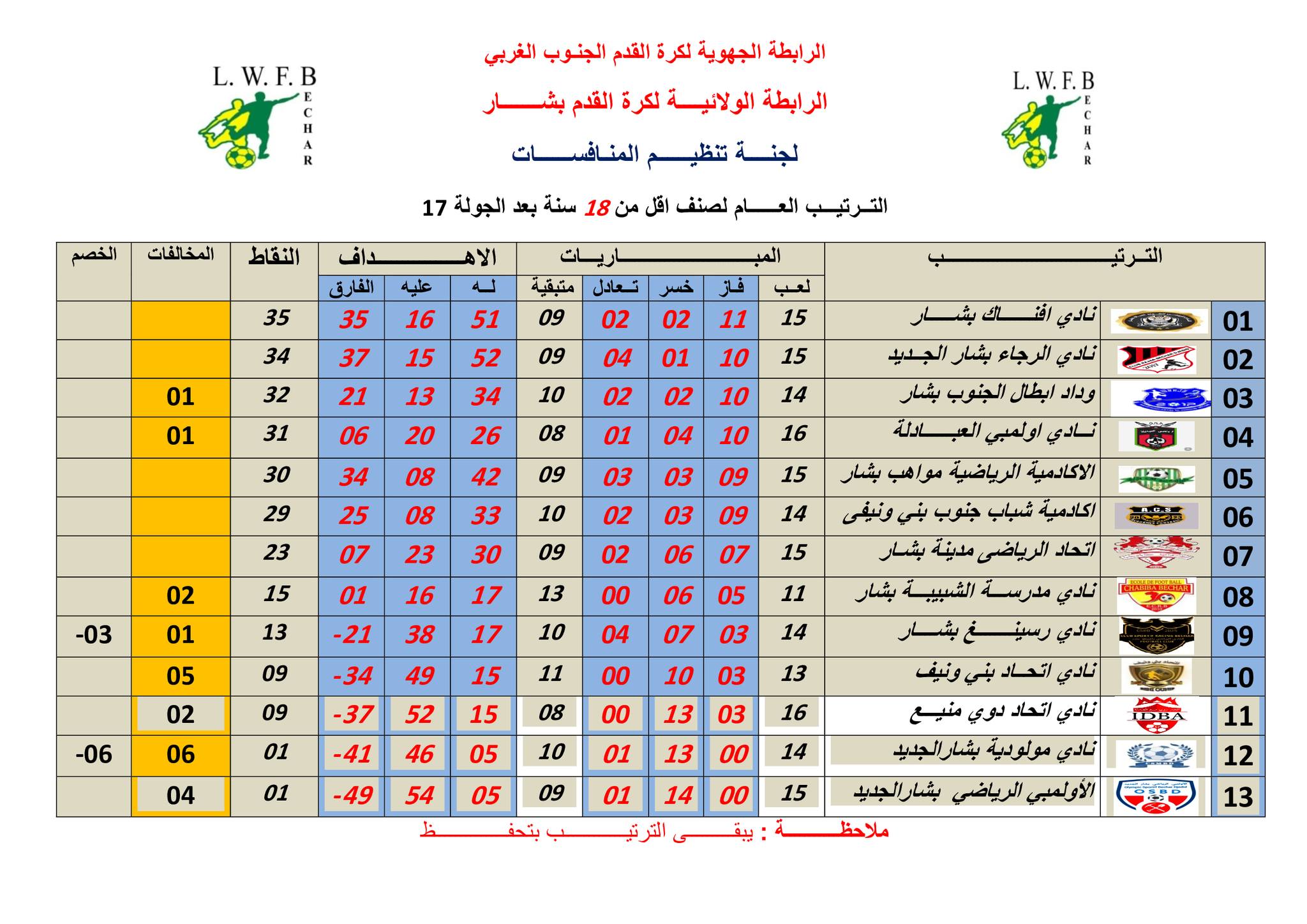 جميع الحقوق محفوظة © 2014 - 2024 الرابطة الولائية لكرة القدم - بشار