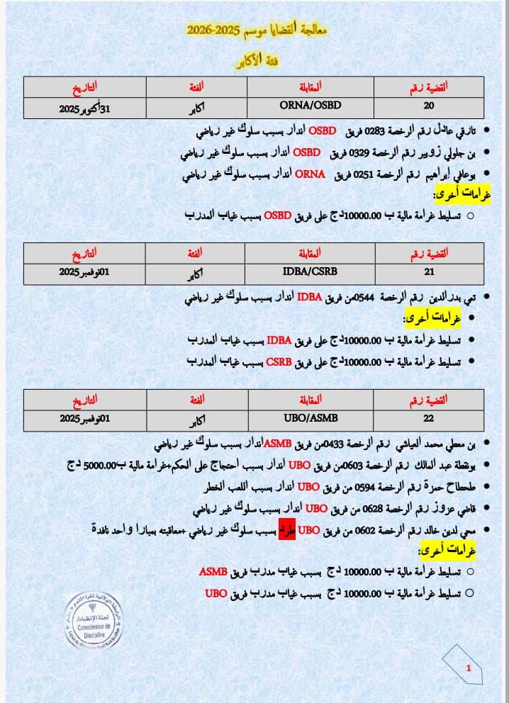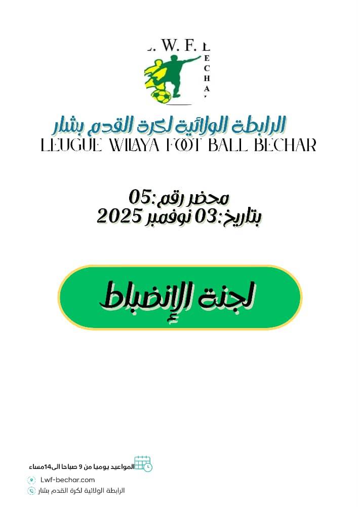 Posted on 4 novembre 20254 novembre 2025 By brahim لجنة الانضباطمحضر لجنة الانضباط رقم 05 – ٱكابر News, Publicite